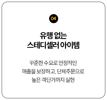 스테디셀러로 안정적인 매출과 높은 재방문율을 확보합니다.