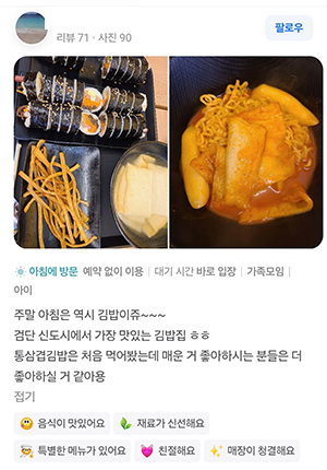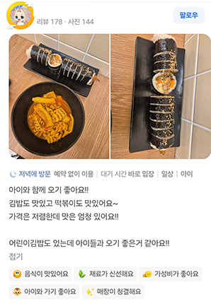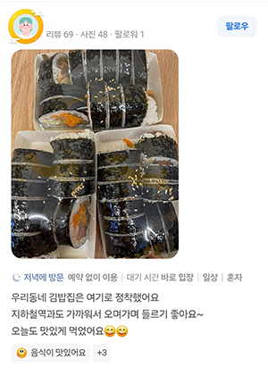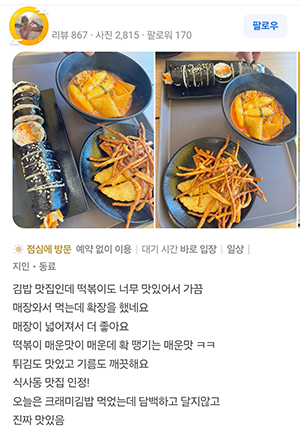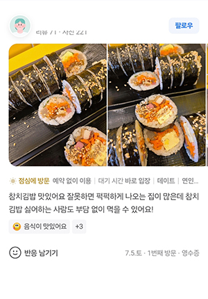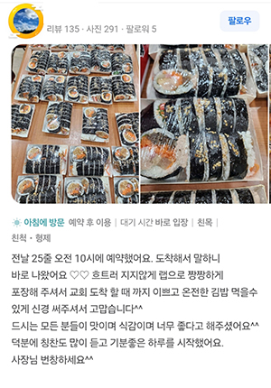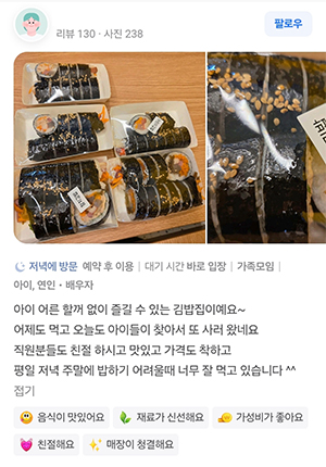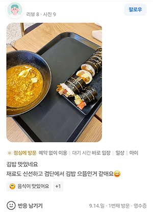리뷰가 말하는 정백김밥