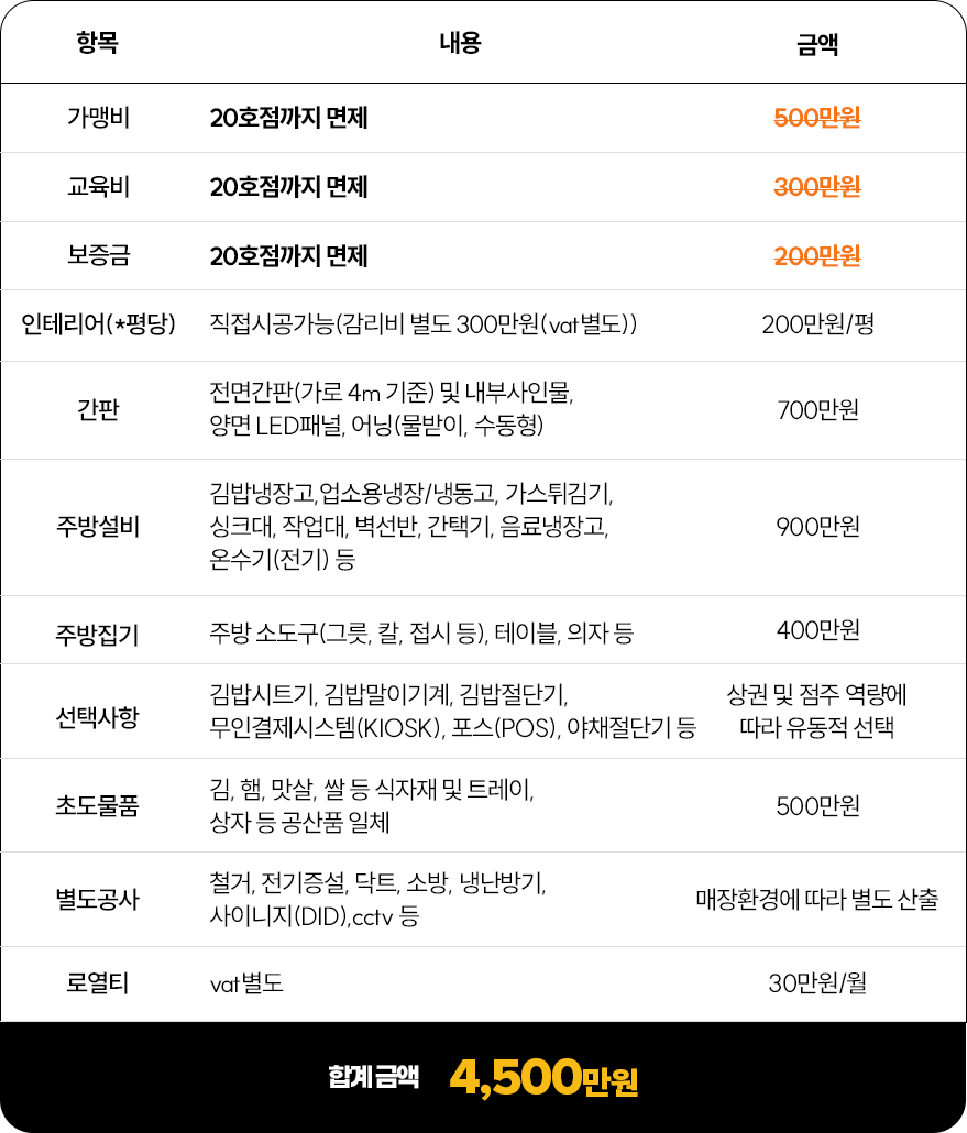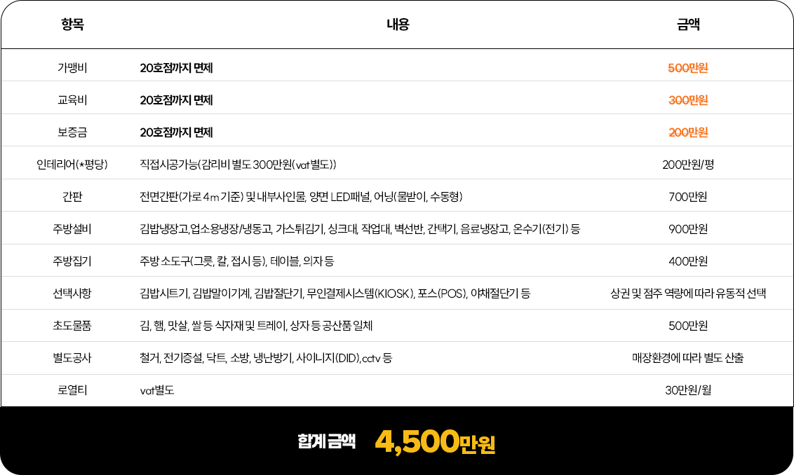 정백김밥 창업비용
